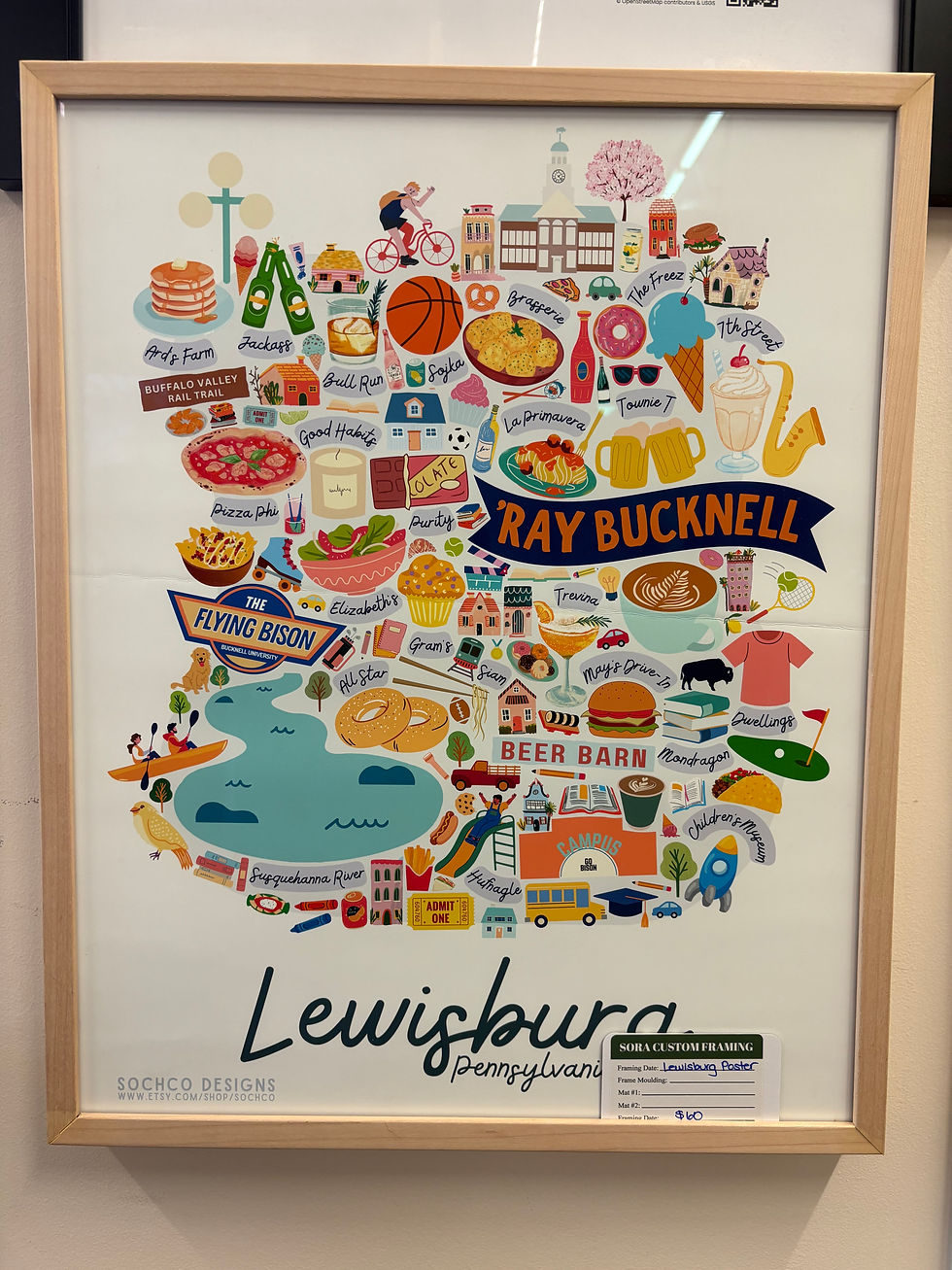 Sora Custom Framing & Gallery has a history in downtown Lewisburg, Pennsylvania.